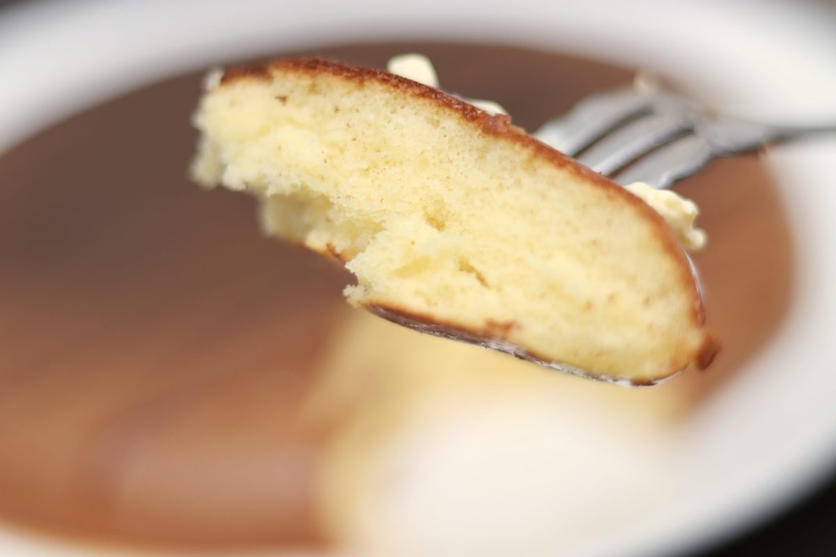 お好みでバターやメープルシロップをかけて食べると…幸せ…。よく焼きだったため、外はサクサク中はふんわり、しっとりしていて、奇しくも記者が最も好きなタイプに。