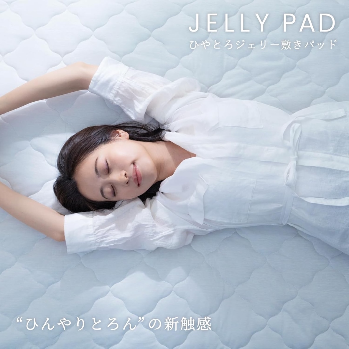 テイジンの「JELLY PAD」は、暑さをやわらげる“ひんやり”感と、“とろん”としたやみつきになる感触が特長の敷きパッド。
